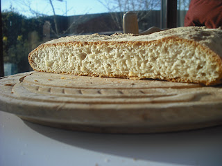 verdict: a definite 'thumbs up' with this bread. It was super easy to bake and I'm sure would have looked even better had I not stuffed up the plastic covering stage, ie not flouring the dough on top before covering with cling. But everyone loved this bread and I will definitely be baking it on a regular basis.